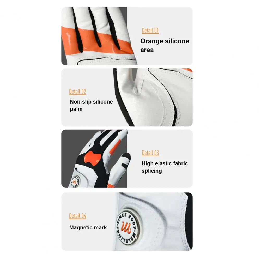 Say goodbye to chipping problems and hooks with these gloves that provide better control over the ball's flight. The orange silicone zone inside the glove keeps the club securely in your hand, making sure you grip it correctly every time. Elevate your performance on the course with these innovative golf gloves!