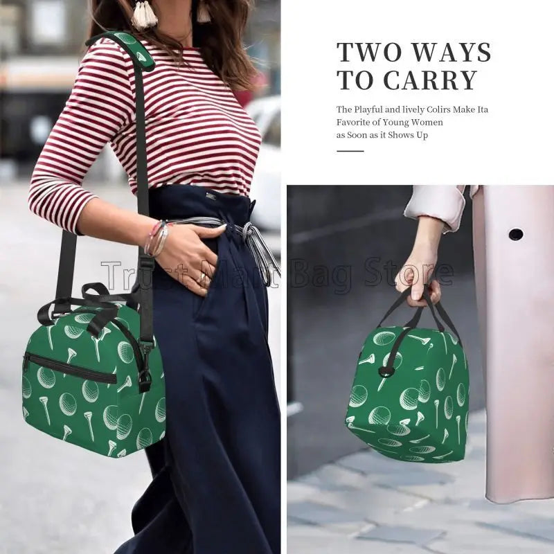 Design -- Lunch box can be hand-held, cross-body, and the cross-body strap is detachable, and it is easy to switch between the two ways. There is a zippered pocket on the front for your phone, cutlery, cards and more. The main pocket can hold bento boxes, beverages, snacks, etc.